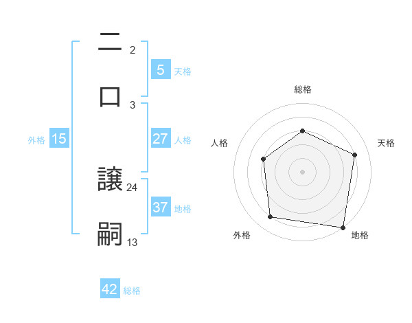 二口 譲嗣さんを姓名の画数から五運を鑑定