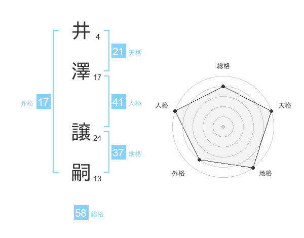 井澤 譲嗣さんの総格は58画の4点!
