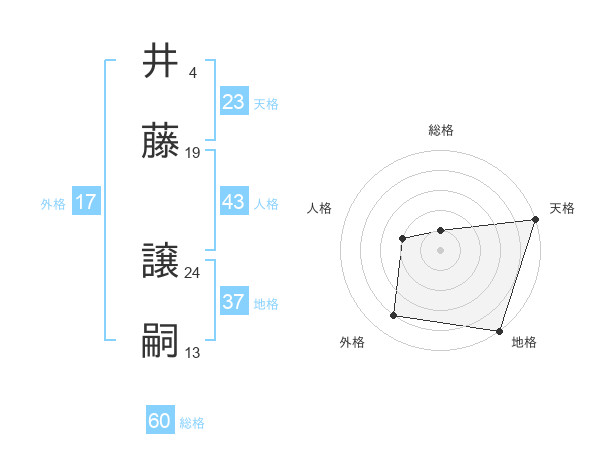井藤 譲嗣さんの天格は23画の5点!