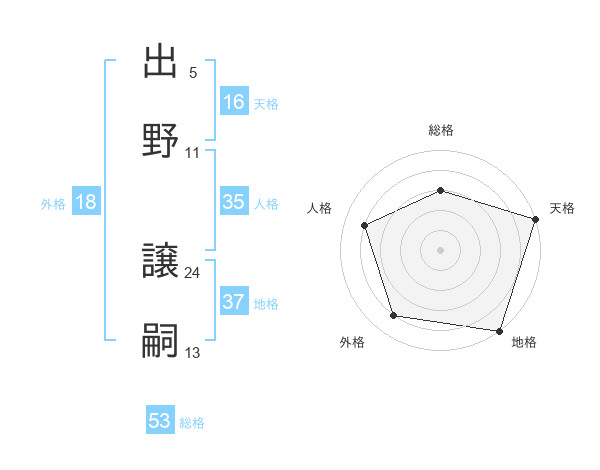 出野 譲嗣さんの総格は53画の3点!