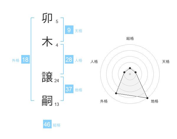 卯木 譲嗣さんを姓名の画数から五運を鑑定