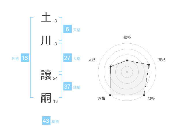 土川 譲嗣さんの地格は37画の5点!