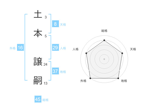 土本 譲嗣さんの総格は45画の4点!