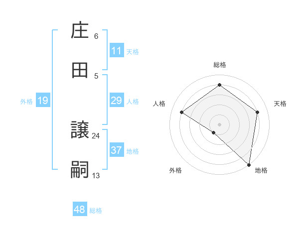 庄田 譲嗣さんの地格は37画の5点!