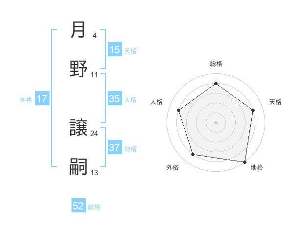 月野 譲嗣さんの総格は52画の4点!
