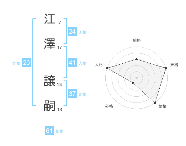 江澤 譲嗣さんの総格は61画の3点!