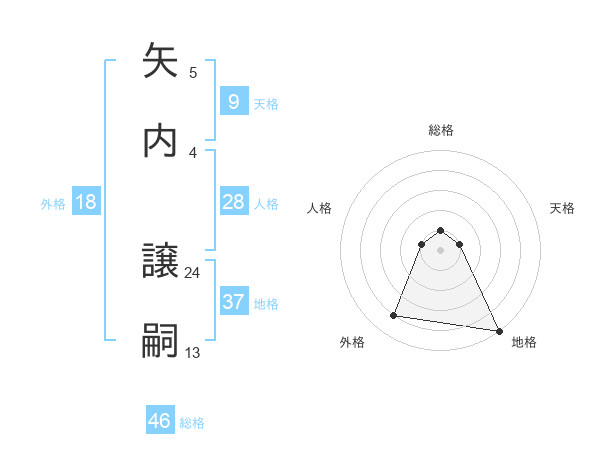 矢内 譲嗣さんを姓名の画数から五運を鑑定