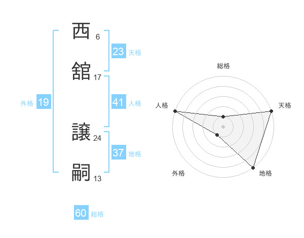 西舘 譲嗣さんを姓名の画数から五運を鑑定