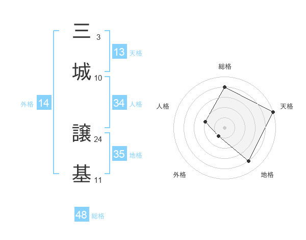 三城 譲基さんの総格は48画の4点!
