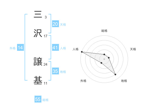 三沢 譲基さんを姓名の画数から五運を鑑定