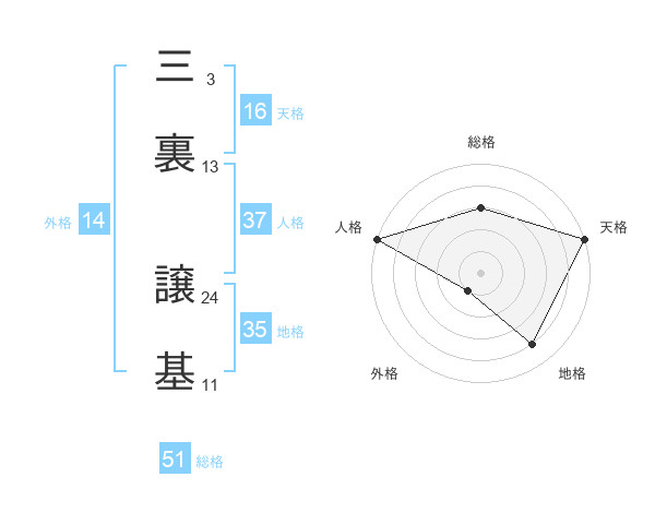 三裏 譲基さんを姓名の画数から五運を鑑定
