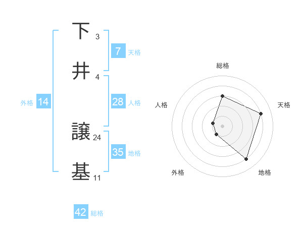 下井 譲基さんの総格は42画の3点!