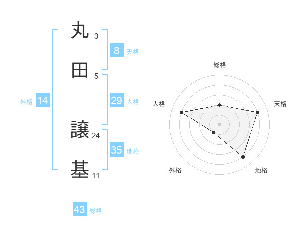 丸田 譲基さんを姓名の画数から五運を鑑定