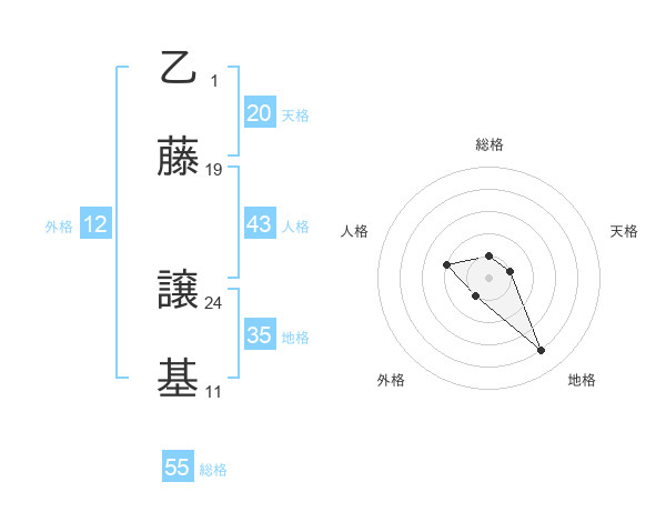 乙藤 譲基さんの総格は55画の1点!
