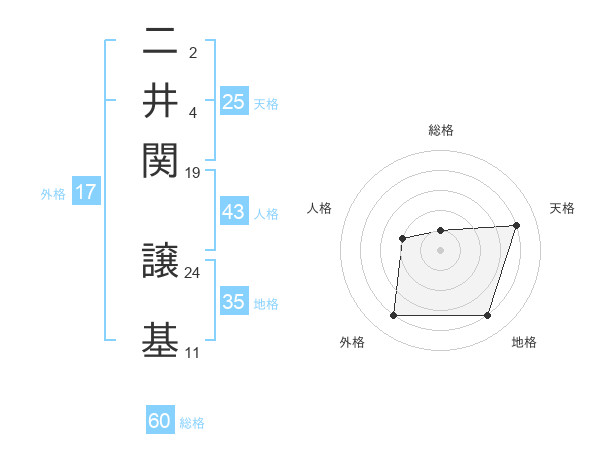 二井関 譲基さんを姓名の画数から五運を鑑定