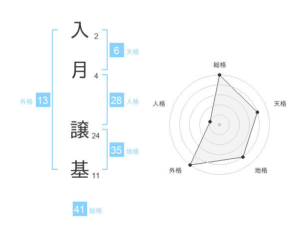 入月 譲基さんの総格は41画の5点!