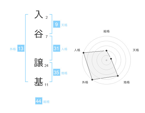 入谷 譲基さんの総格は44画の2点!