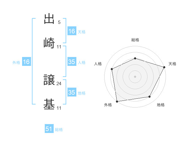 出崎 譲基さんの総格は51画の3点!