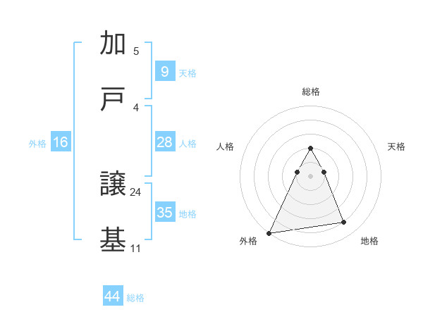 加戸 譲基さんを姓名の画数から五運を鑑定