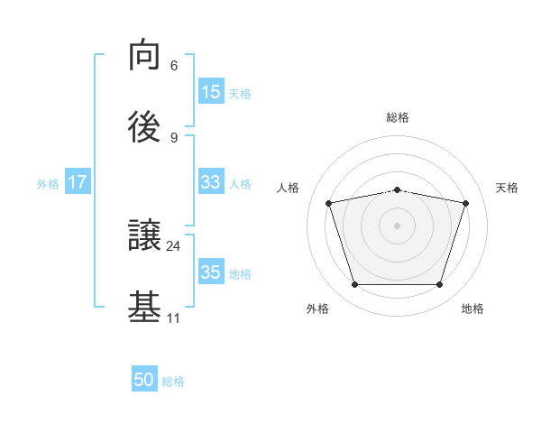 向後 譲基さんの外格は17画の4点!
