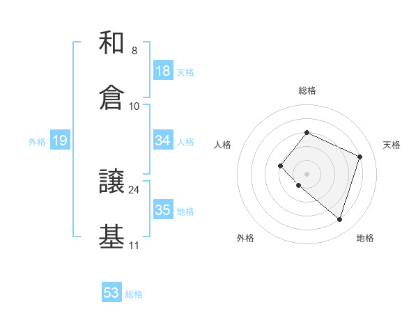 和倉 譲基さんの総格は53画の3点!