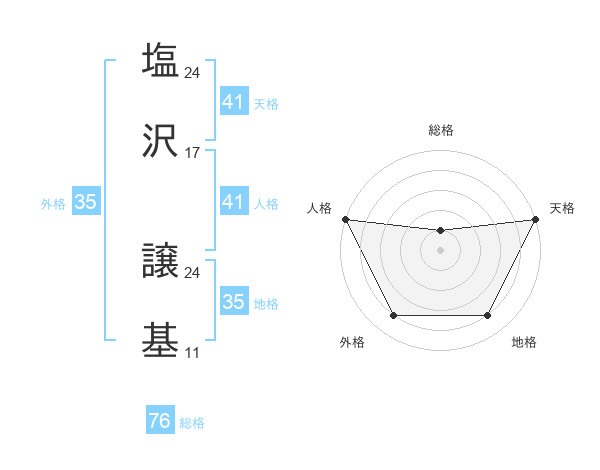 塩沢 譲基さんの総格は76画の1点!