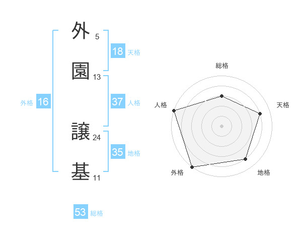 外園 譲基さんの総格は53画の3点!