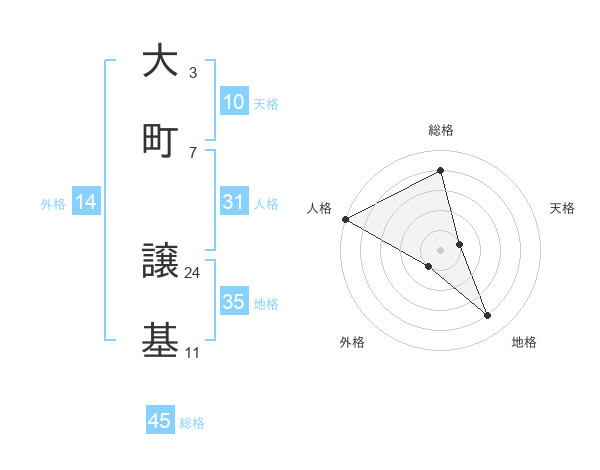 大町 譲基さんの総格は45画の4点!