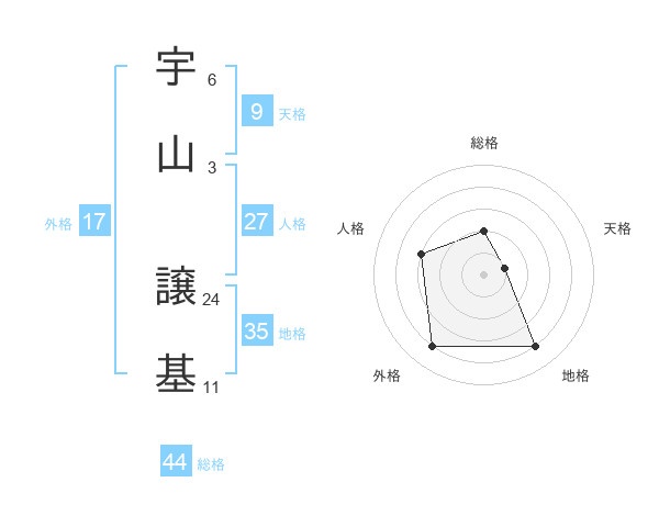 宇山 譲基さんを姓名の画数から五運を鑑定
