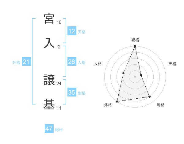 宮入 譲基さんの総格は47画の5点!