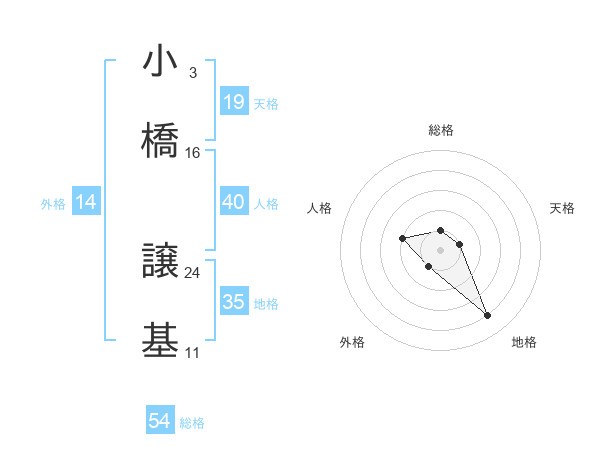 小橋 譲基さんの総格は54画の1点!