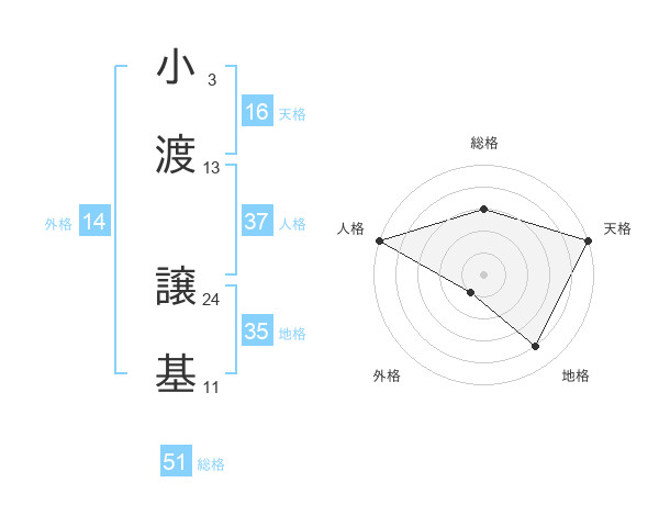 小渡 譲基さんの総格は51画の3点!