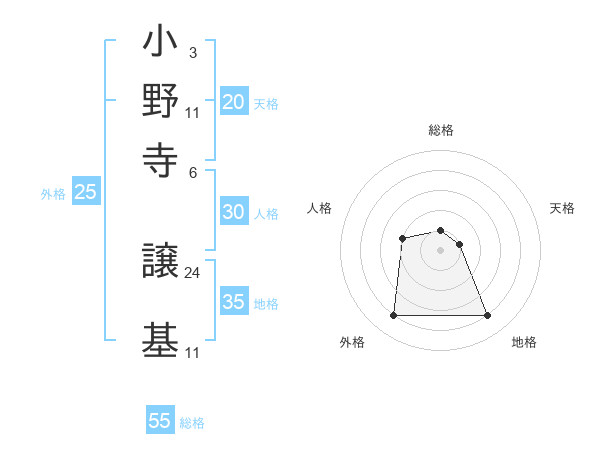 小野寺 譲基さんの天格は20画の1点!