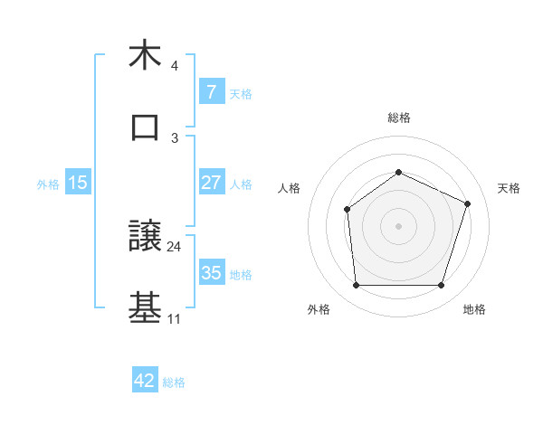 木口 譲基さんの総格は42画の3点!