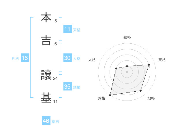 本吉 譲基さんの外格は16画の5点!
