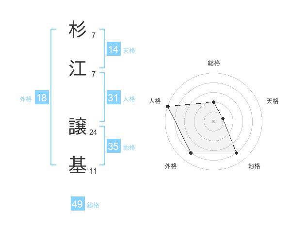 杉江 譲基さんを姓名の画数から五運を鑑定