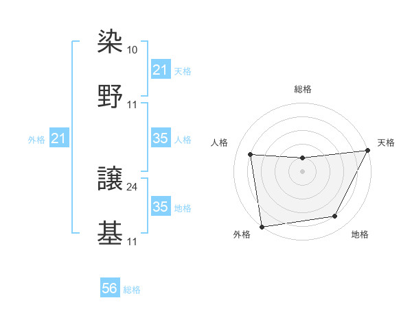 染野 譲基さんの天格は21画の5点