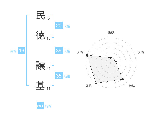 民徳 譲基さんの総格は55画の1点!