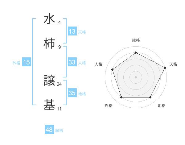 水柿 譲基さんの総格は48画の4点!