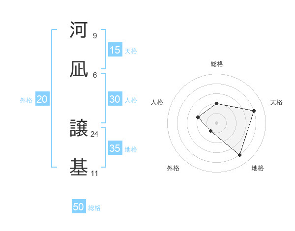 河凪 譲基さんの総格は50画の2点!