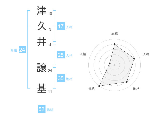 津久井 譲基さんの総格は52画の4点!