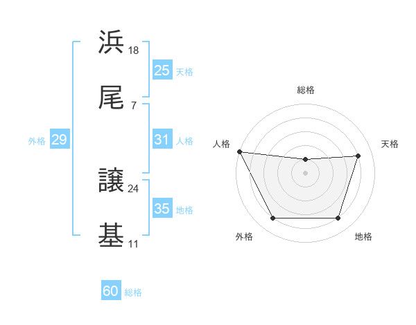 浜尾 譲基さんの天格は25画の4点!