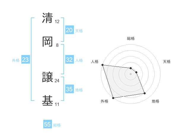 清岡 譲基さんを姓名の画数から五運を鑑定