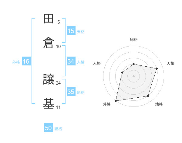 田倉 譲基さんの総格は50画の2点!