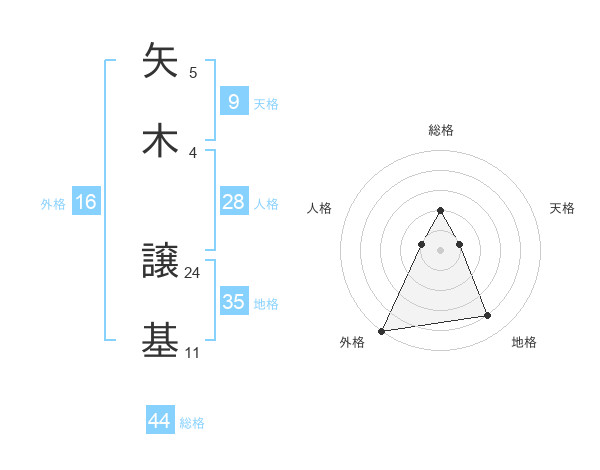 矢木 譲基さんの総格は44画の2点!