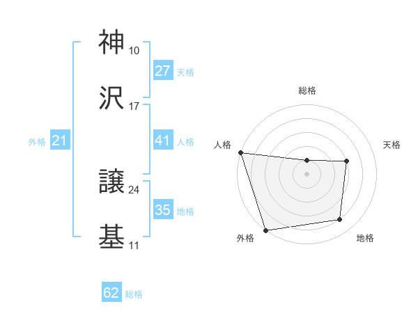 神沢 譲基さんを姓名の画数から五運を鑑定