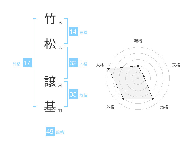 竹松 譲基さんの総格は49画の2点!