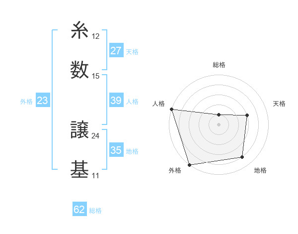 糸数 譲基さんを姓名の画数から五運を鑑定