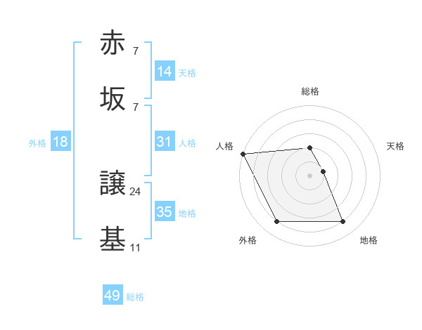 赤坂 譲基さんの総格は49画の2点!