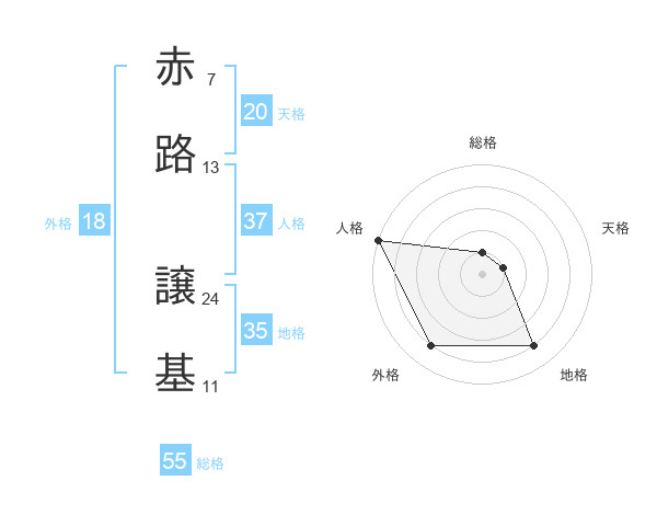 赤路 譲基さんの総格は55画の1点!
